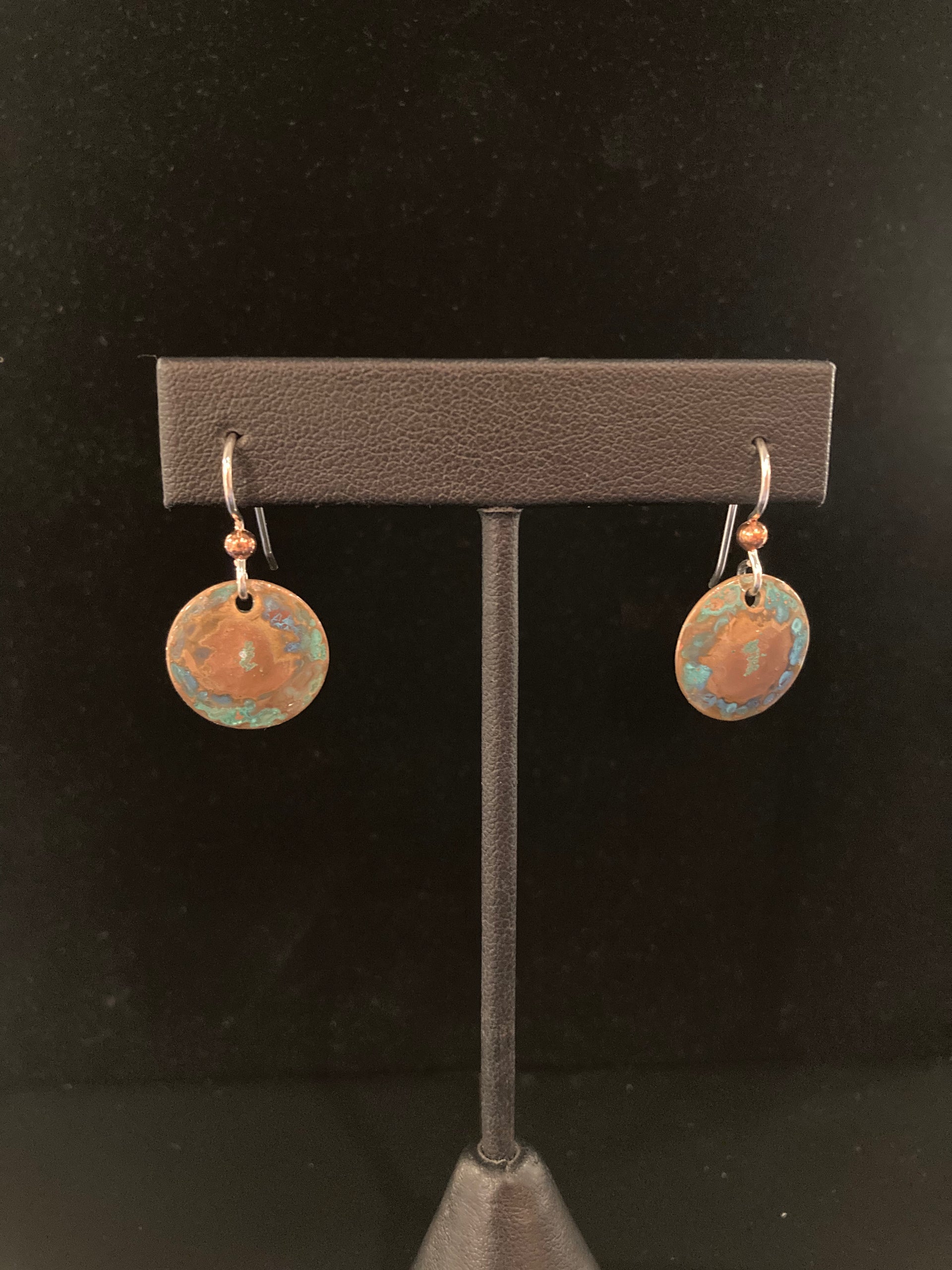 Copper Patina Hammered Disc Earrings