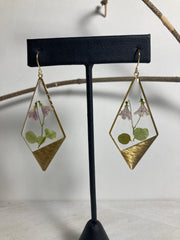 pressed flowers, resin, .925 sterling silver-plated and gold-plated hooks, hypoallergenic bronze