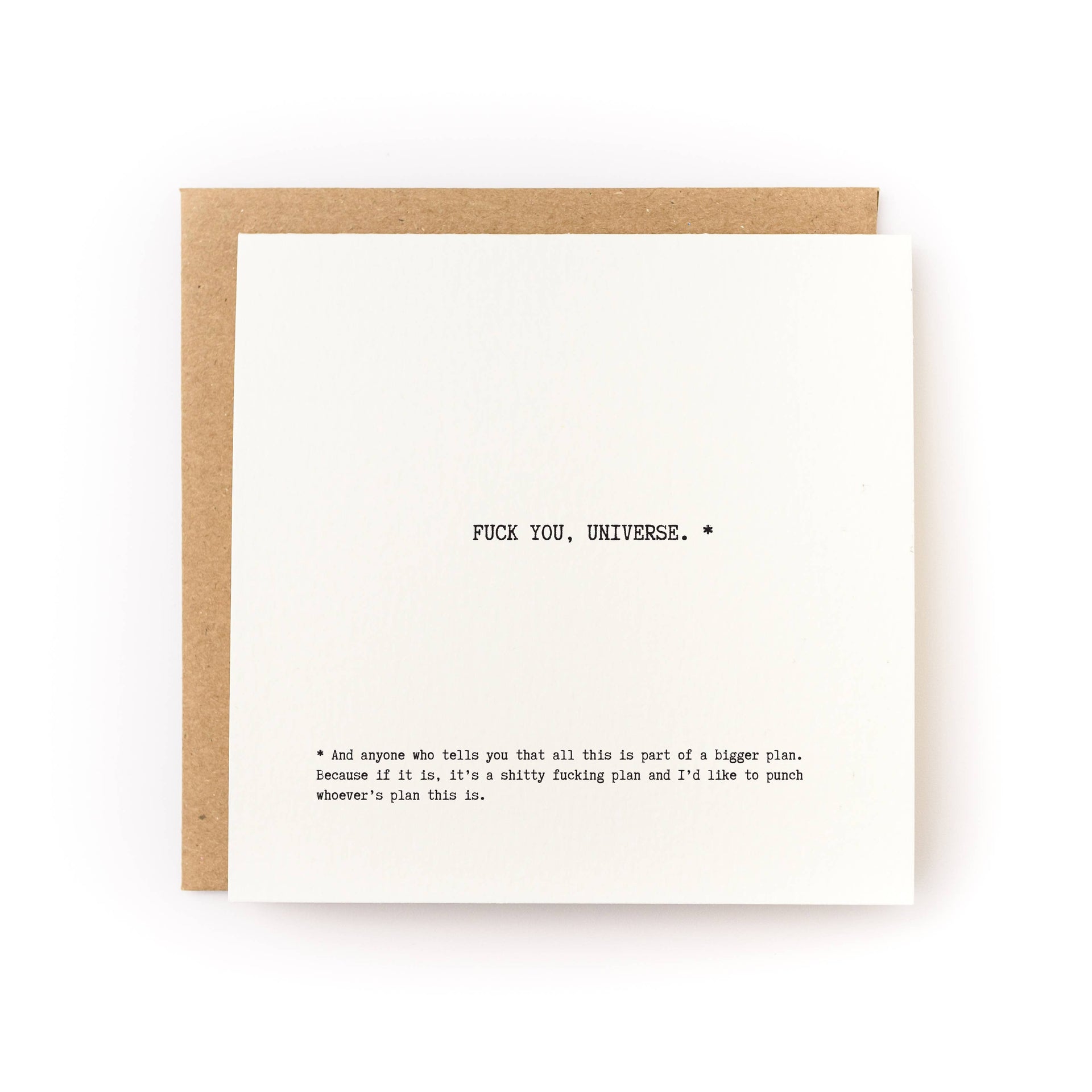 An honest sympathy card that acknowledges a difficult situation with humor and empathy.