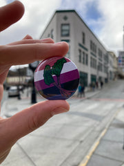Pride pins handmade locally! Based on the flora of Southeast Alaska. Gender fluidity covers anyone who fluctuates between one or more genders at any point. Designed by Hero Dawson!