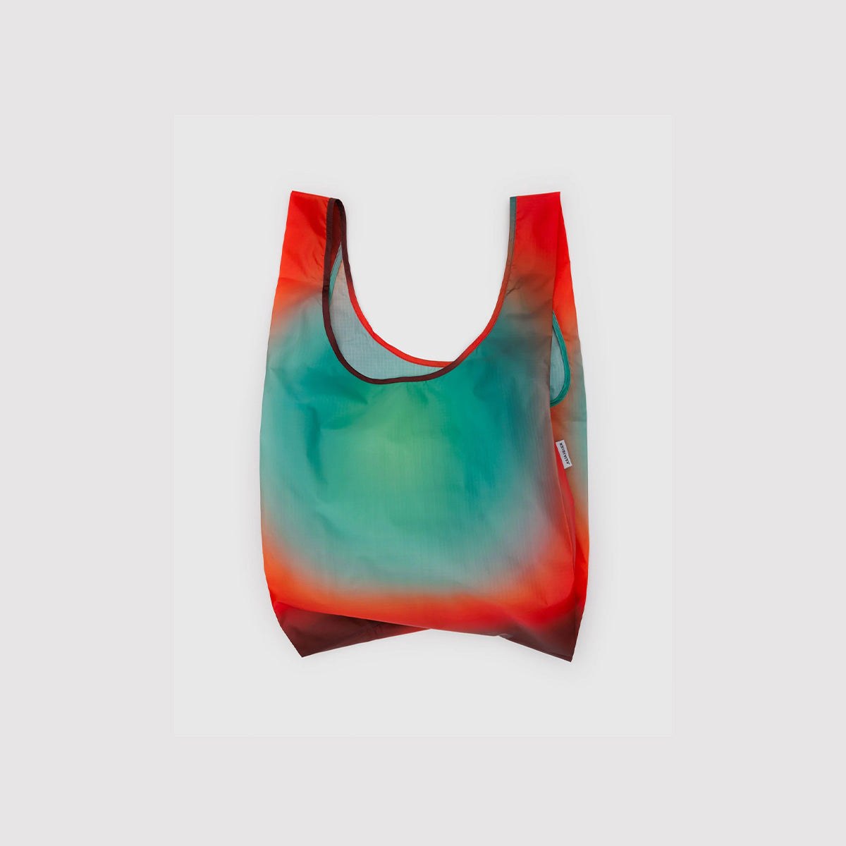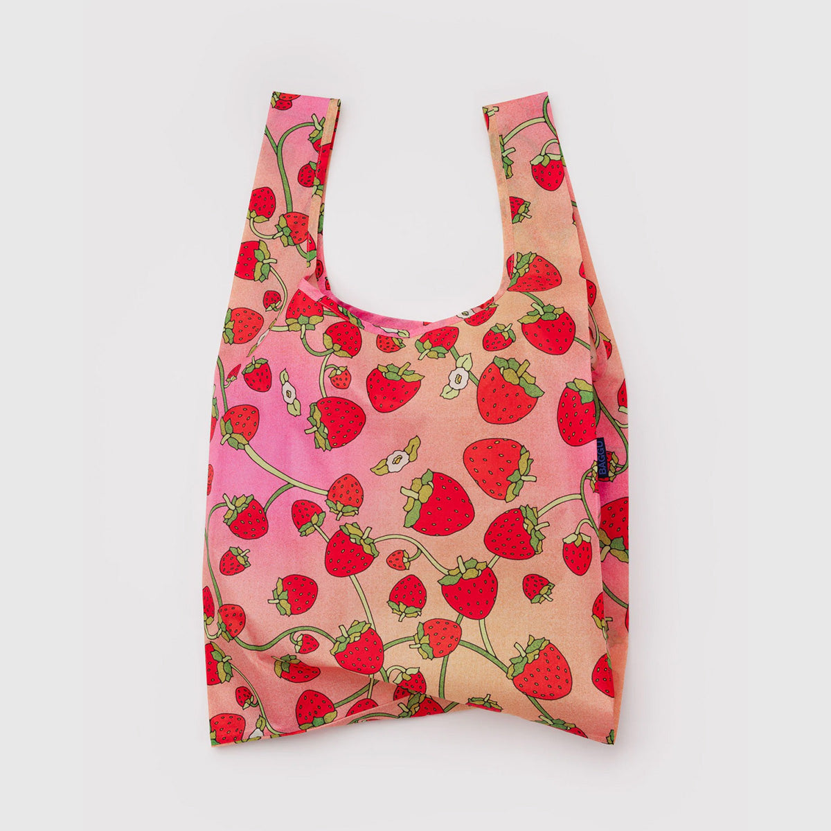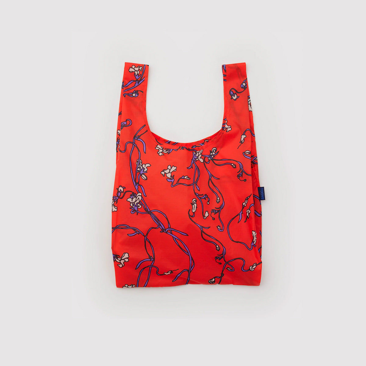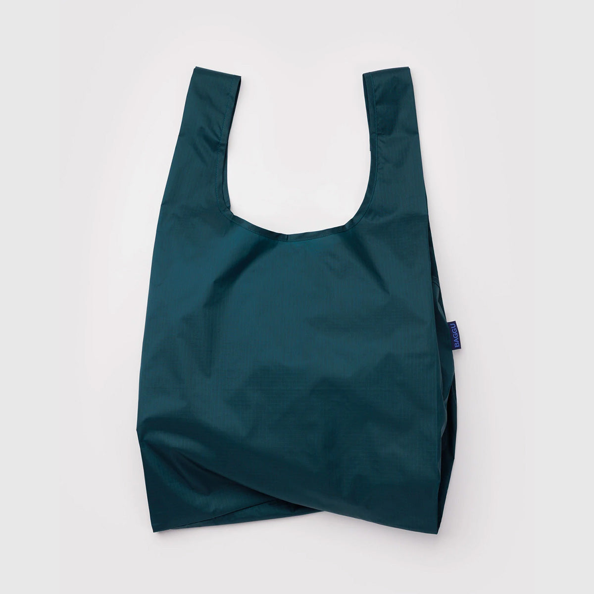 Incredibly light weight and impressively strong, the Standard Baggu is the last grocery bag you'll ever need. Made of 100% rip stop nylon and designed to hold up to 50 pounds, this bag can fold up into a 5" x 5" square in its own carrying pouch for easy convenience when not in use.