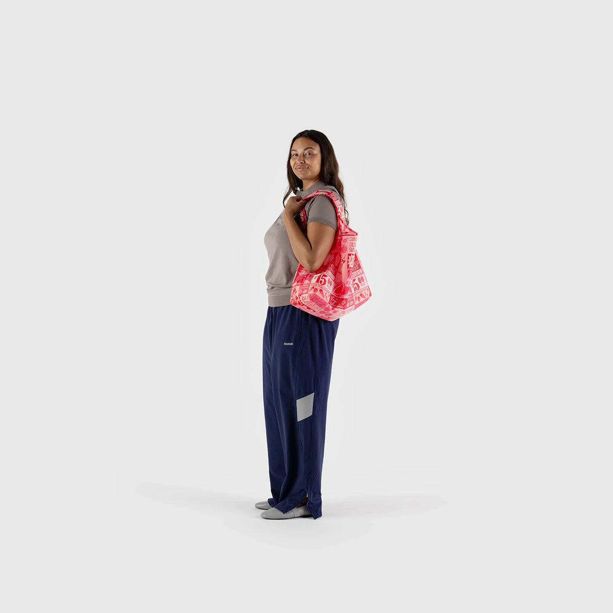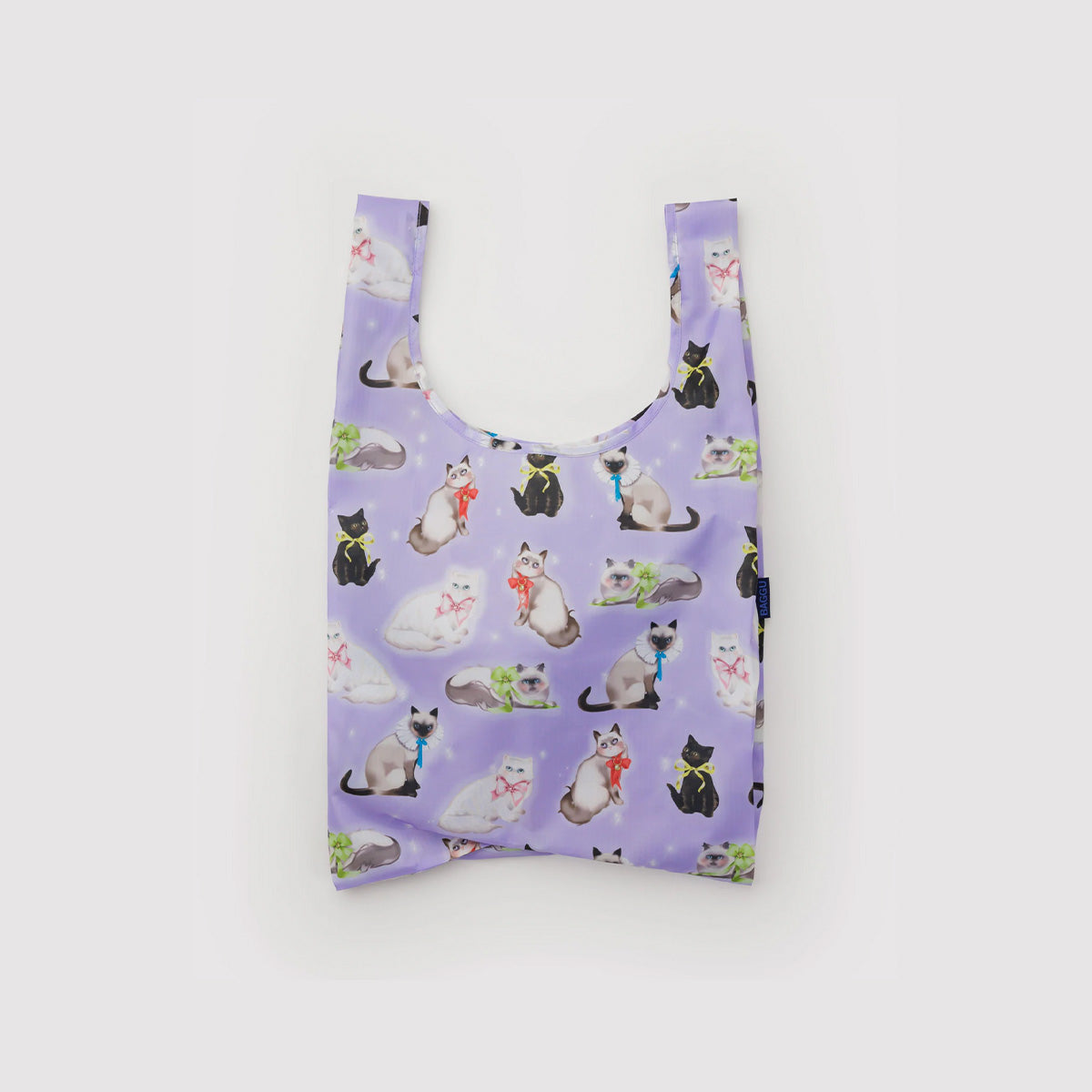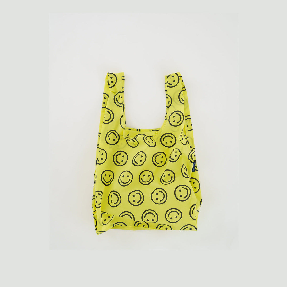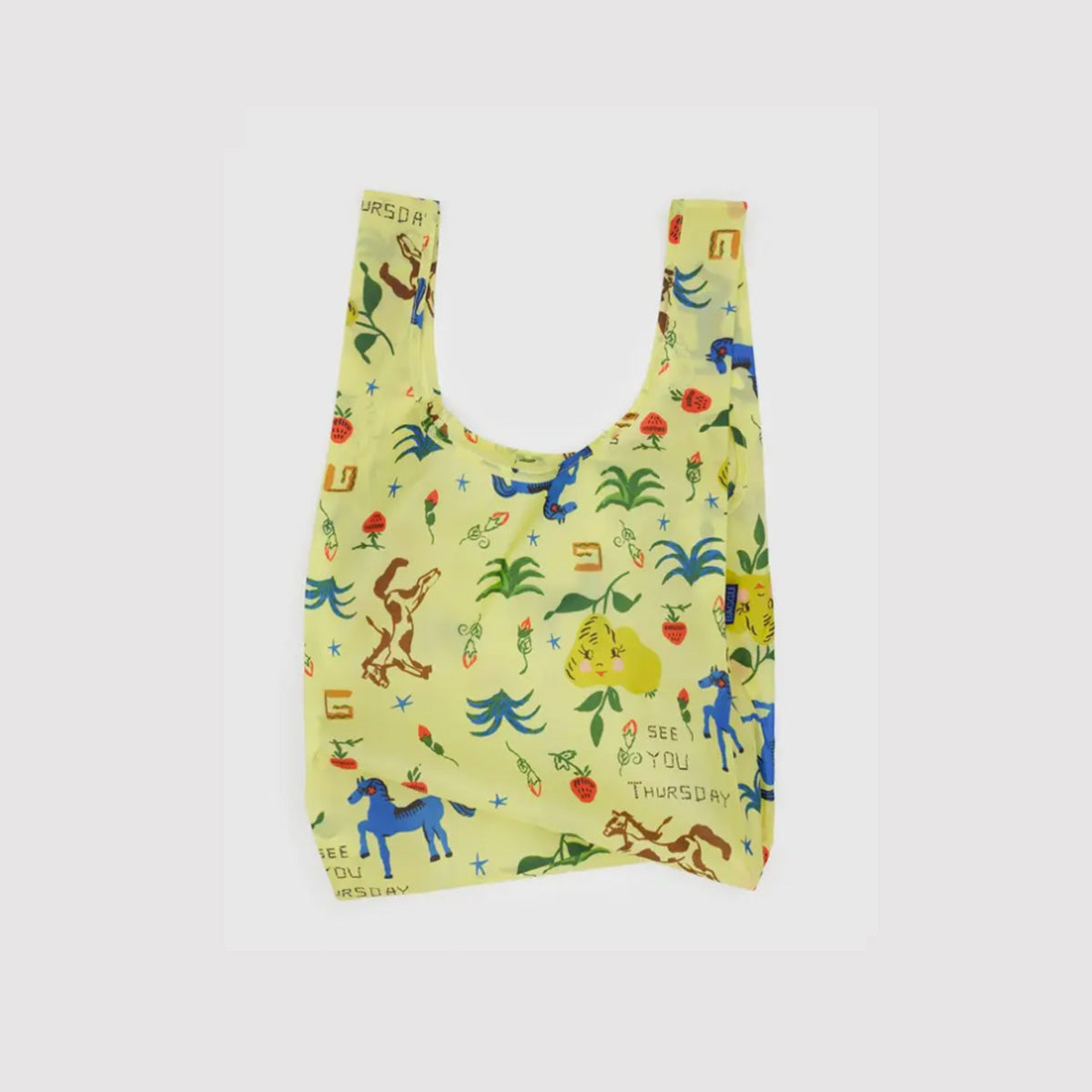 Incredibly light weight and impressively strong, the Standard Baggu is the last grocery bag you'll ever need. Made of 100% rip stop nylon and designed to hold up to 50 pounds, this bag can fold up into a 5" x 5" square in its own carrying pouch for easy convenience when not in use.