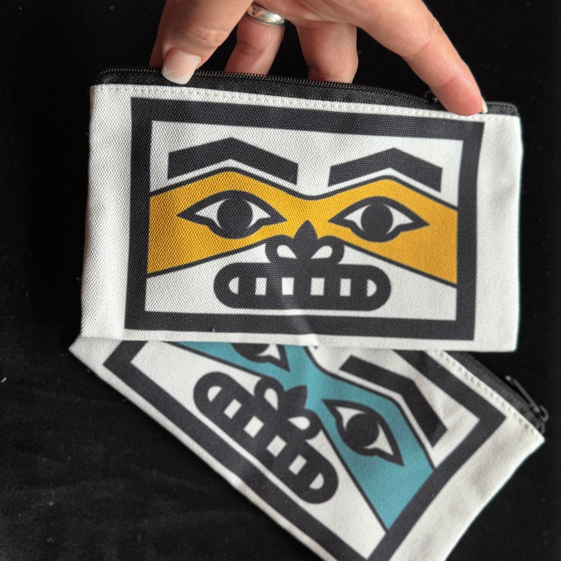 We want all our things to be contained by blinged out Chilkat or Ravenstail. Don’t you? Quality canvas fabric, printed with Yellow Chilkat Face on one side, and Turquoise Chilkat Face on other side.