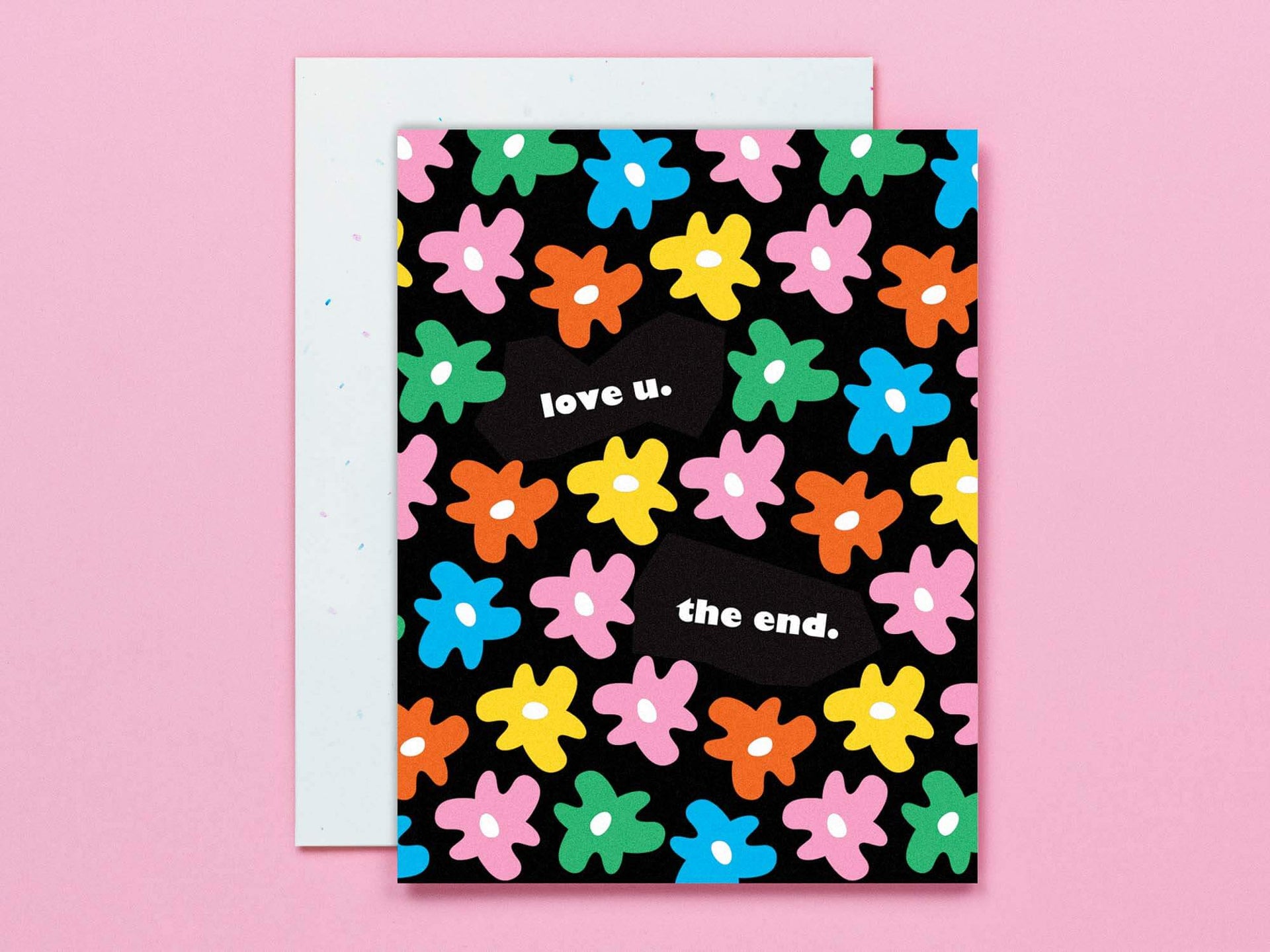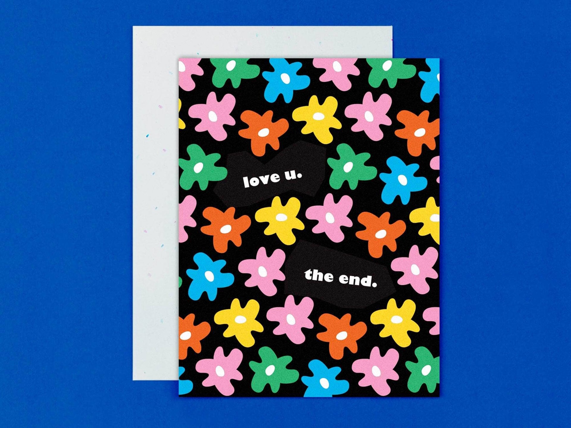 Bold floral pattern love, wedding, anniversary card with a fairy tale ending.