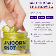 Unleash your sparkle with The Original Glitter Gel by Uniorn Snot! This long-lasting, lightweight gel formula is perfect for festivals, beach days & any occasion calling for bold, all-day shimmer. No primers or adhesives required, just apply & shine.