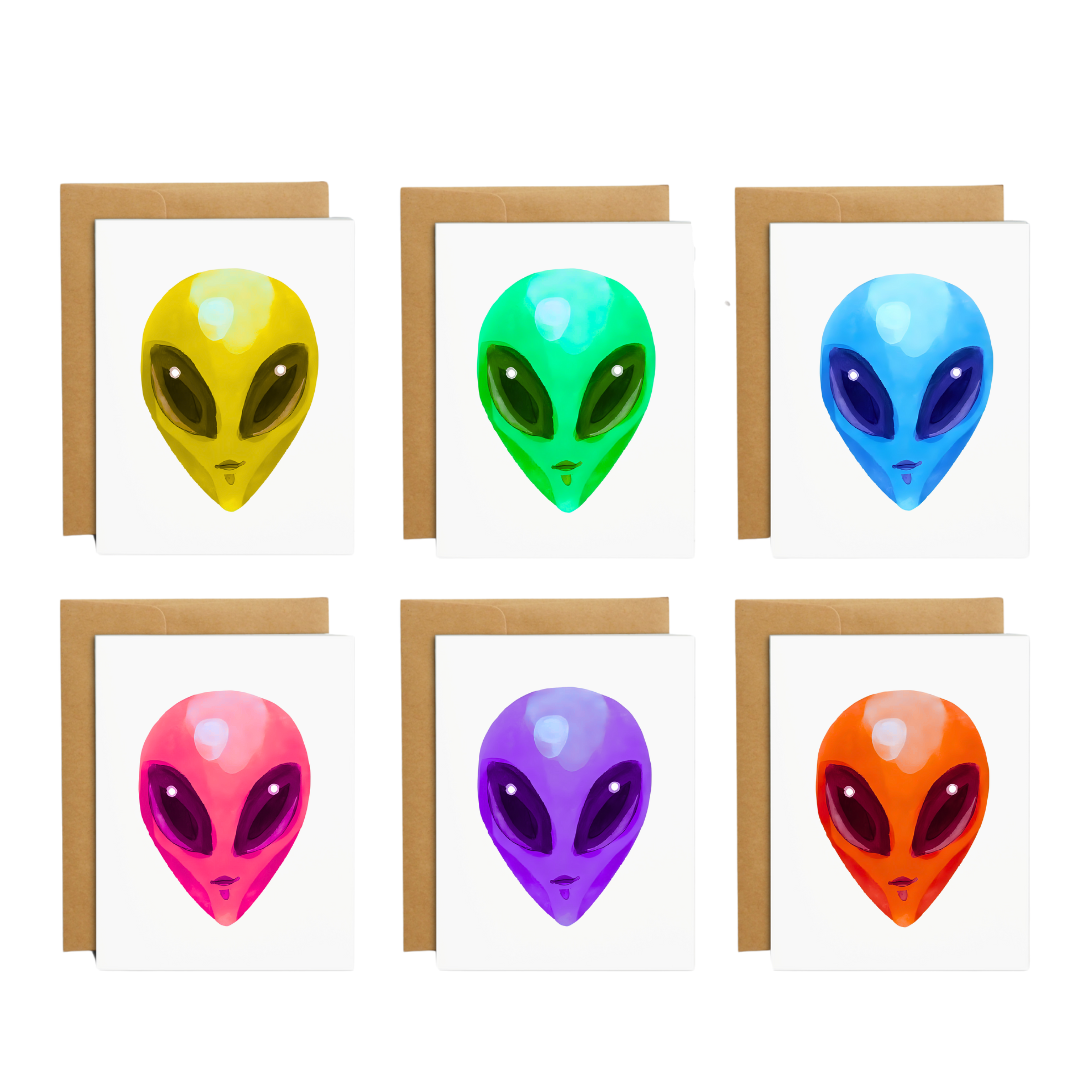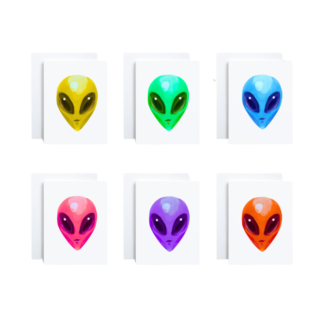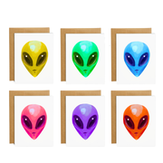 Neon Rainbow Colors Alien Halloween Note Cards (Set of 6)