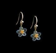 Cast bronze forget-me-nots (the Alaska state flower) with a hand patina finish. Accented in cast glass. Handmade in USA.