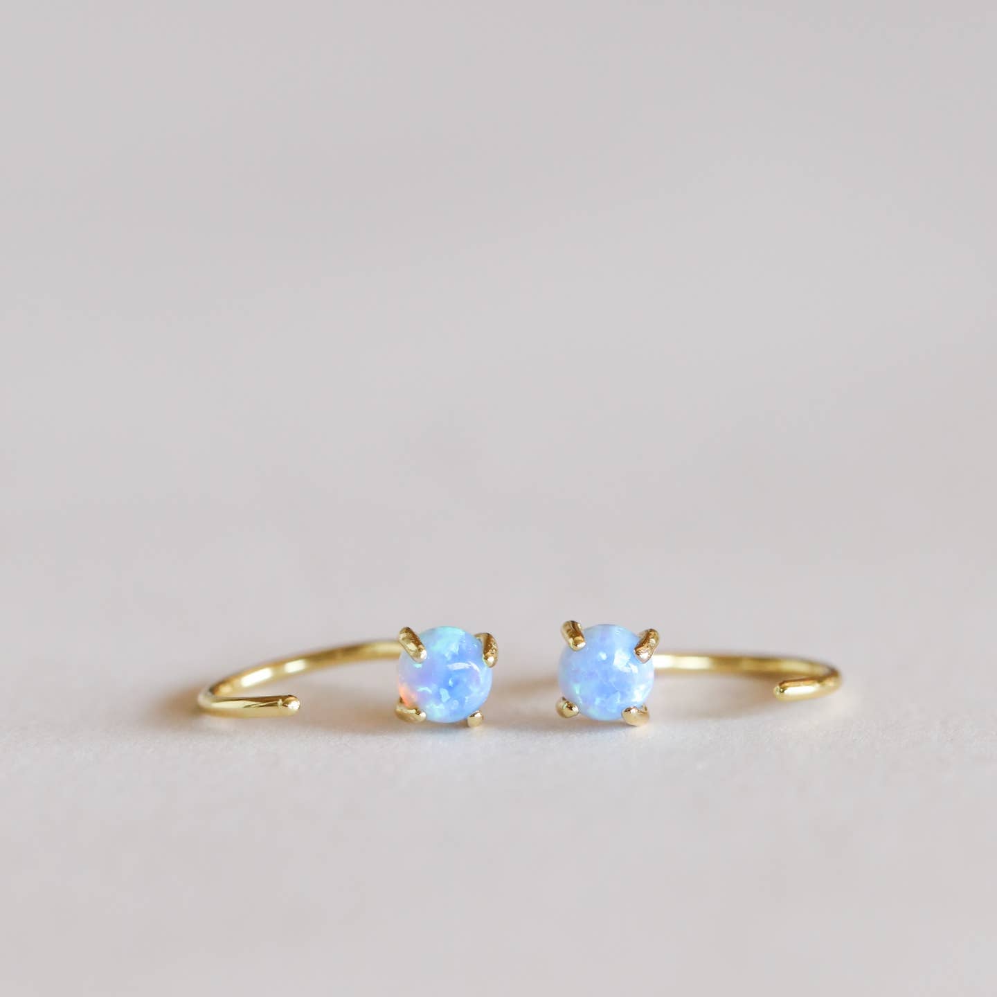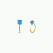 These Huggies feature a gemstone that hugs tight to your ear. Loop the non-stone end through like you would a regular post, and let the stone sit against your ear. Tarnish Free - Long lasting protective coating safeguarding your jewelry from sweat, water, and more. Sterling Silver – 18K gold plating over silver Hypoallergenic – Lead Free Lab Grown Fire Opal Outer Diameter 11mm