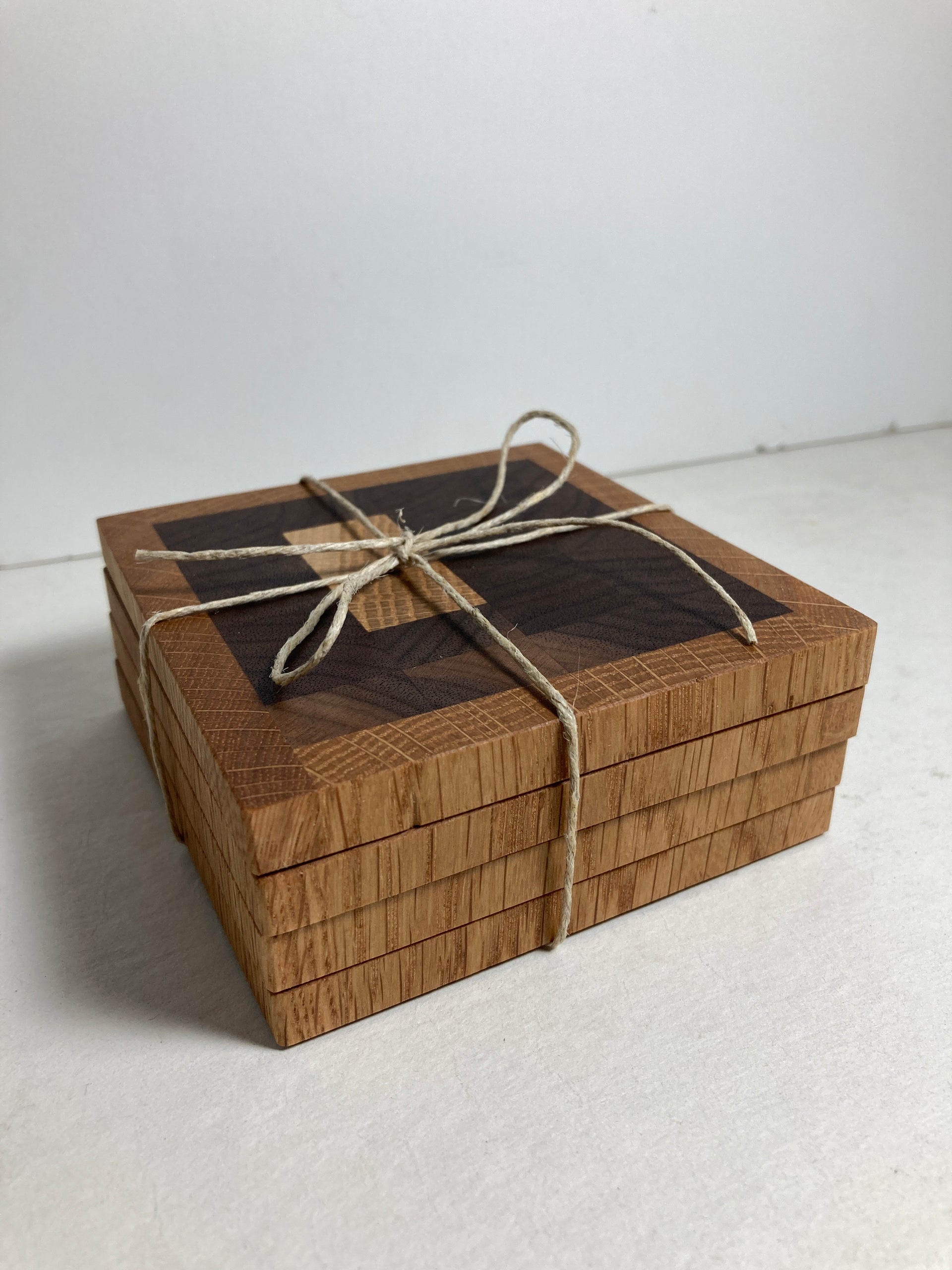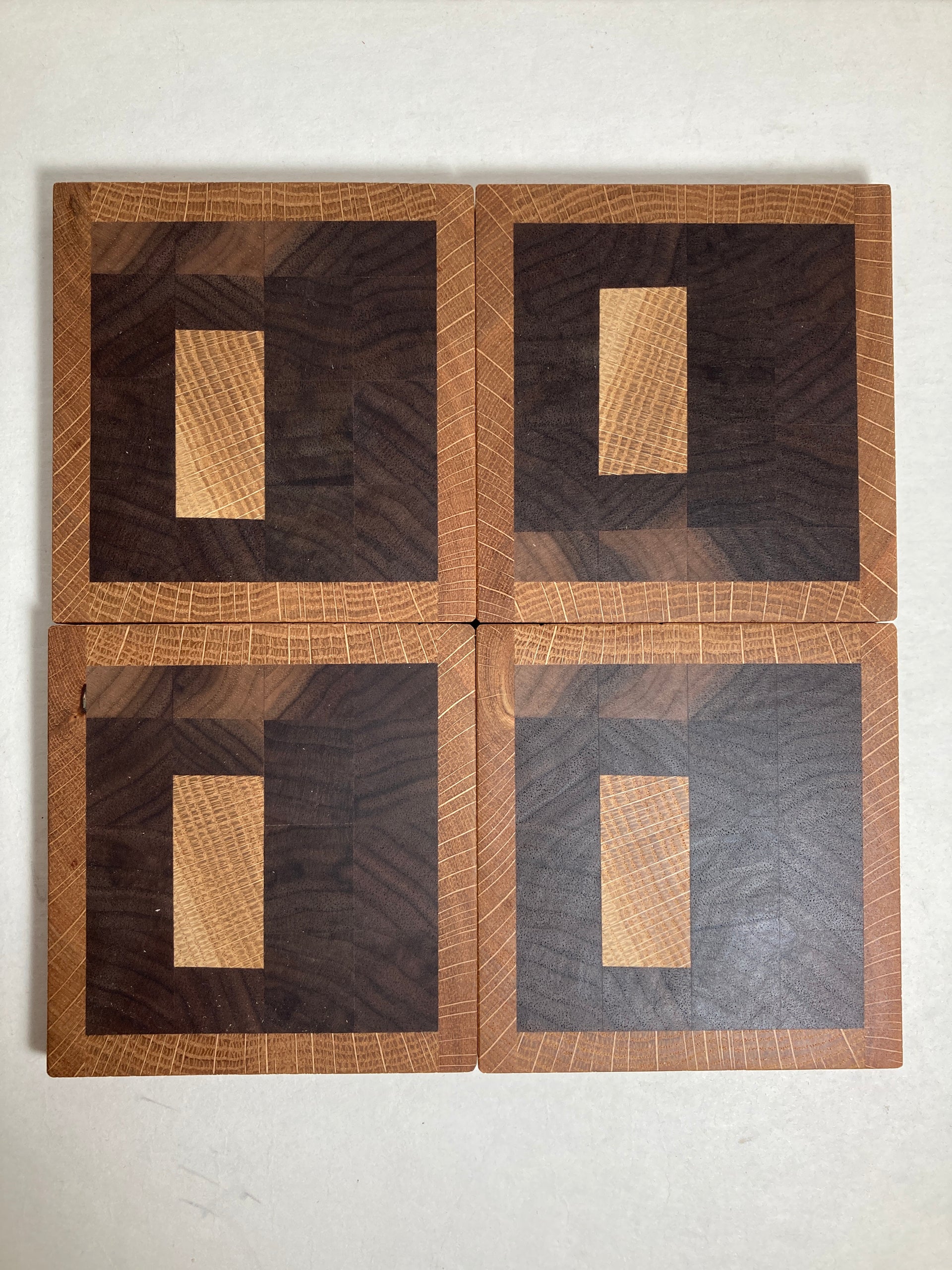 4 handmade wood coasters by Juneau woodworker David and Leggitt of Cleanline Construction and Maintenance