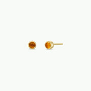 Simple Stud Earrings - Amber Gemstone - 18k Gold Plated