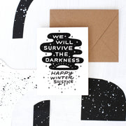 We will survive the darkness. This design was inspired by cultivating positivity and hope around the holidays and solstice when the sky is darker and there is less light. Worthwhile Paper screen prints their greeting cards sustainably and locally!