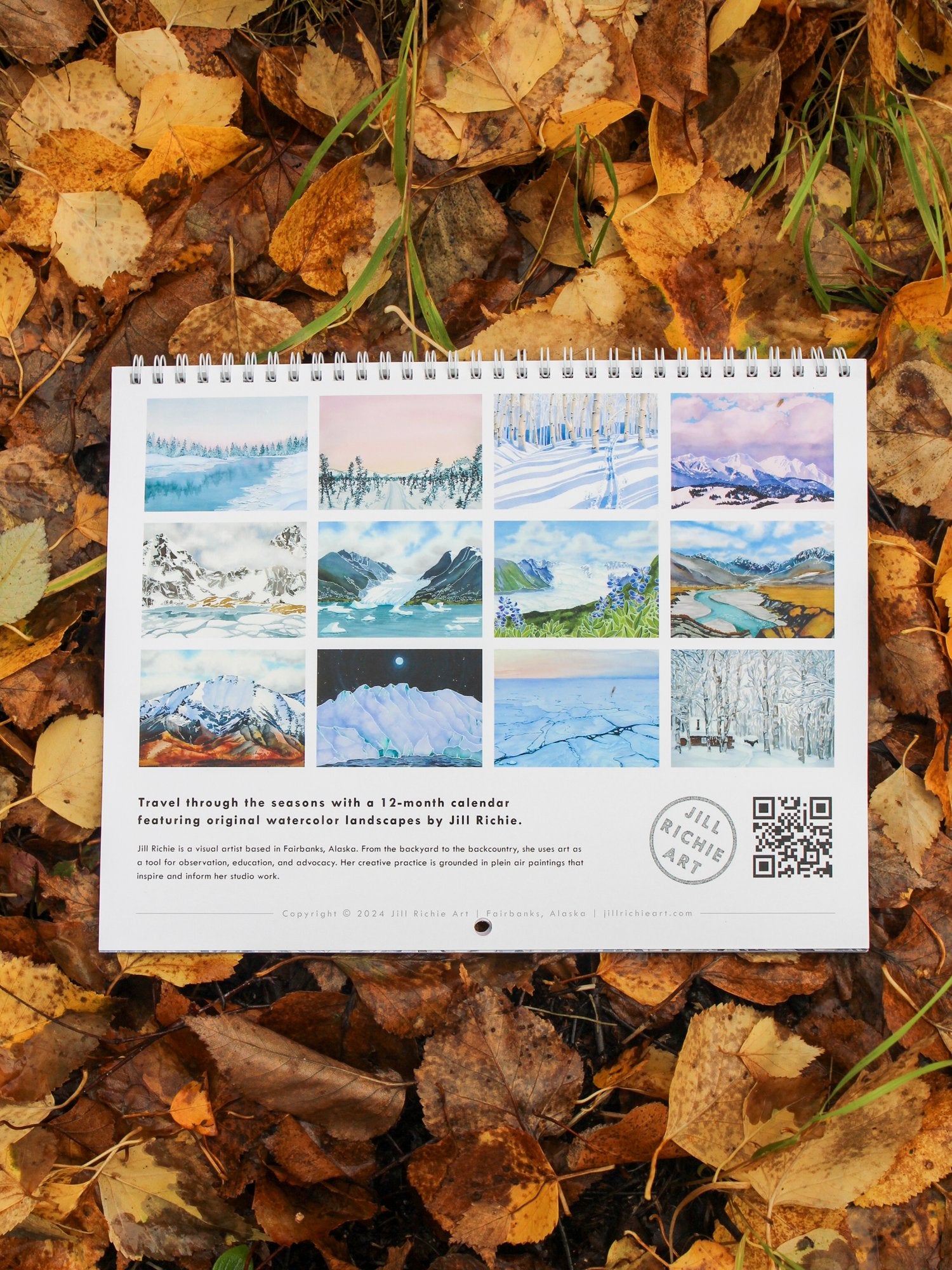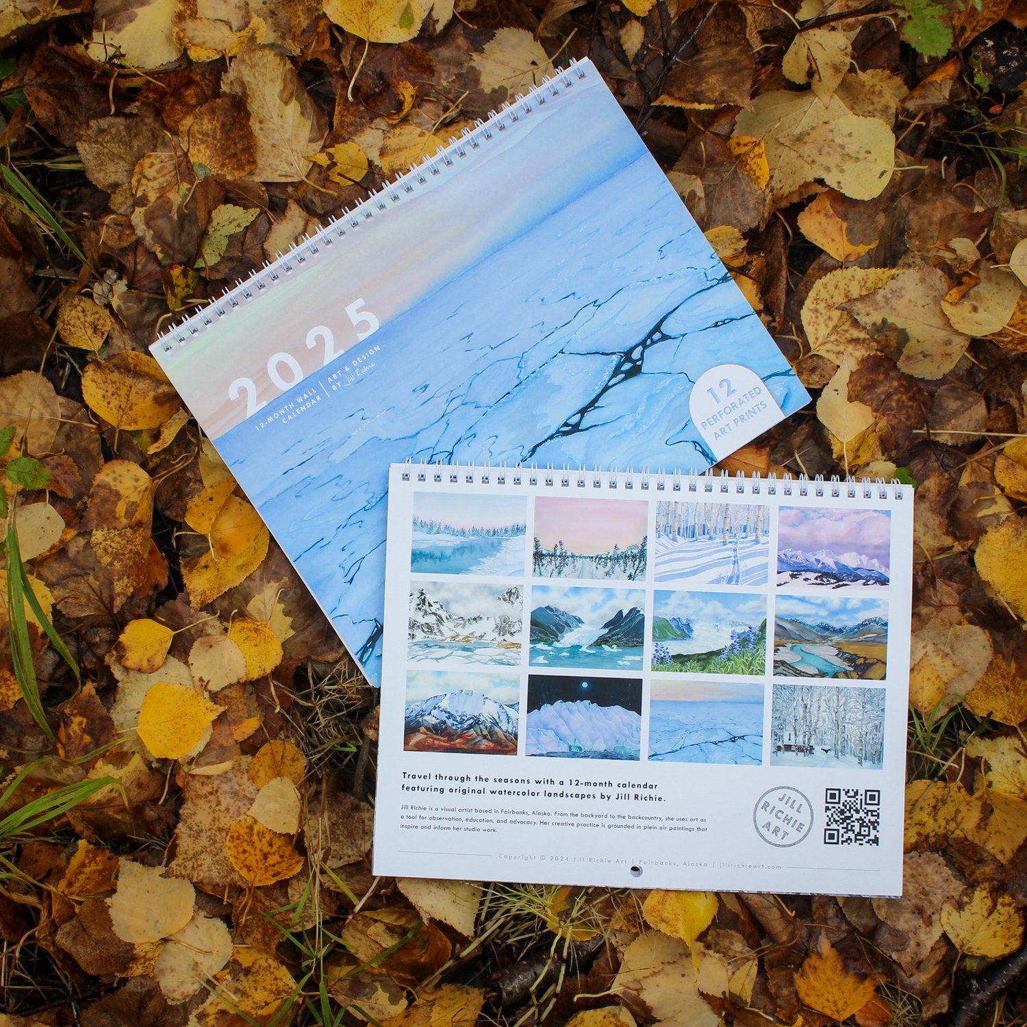 Travel through the seasons with a 12-month calendar featuring original watercolor landscapes. Each month’s image has a perforated edge so you can easily repurpose your calendar into an 8x10" art print, if you’d like!