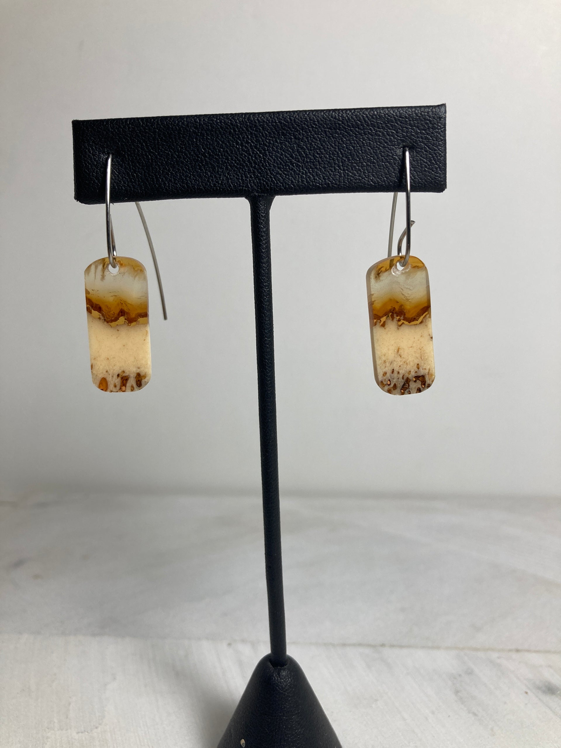 These Earring were handmade in Homer Alaska from Musk Ox skull and epoxy resin.