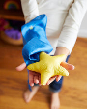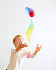 Throw it! Catch it! Spin it! A "bonkless" rubber ball covered in silk, easy to throw by the tail and does not hurt when you get hit by it. Bounces along the ground a few times for more catching chances. A red stuffed ball with a rainbow silk tail. Comes packaged in a silk bag. Warning: Choking Hazard Toy contains a small ball. Not for children under 3. Sarah's Silks inspires imaginative play in children through open-ended toys made from natural materials. Drawing from the philosophies of Waldorf and Montessori education and her own childhood of imaginative play, Sarah has been designing each toy with care for 28 years.